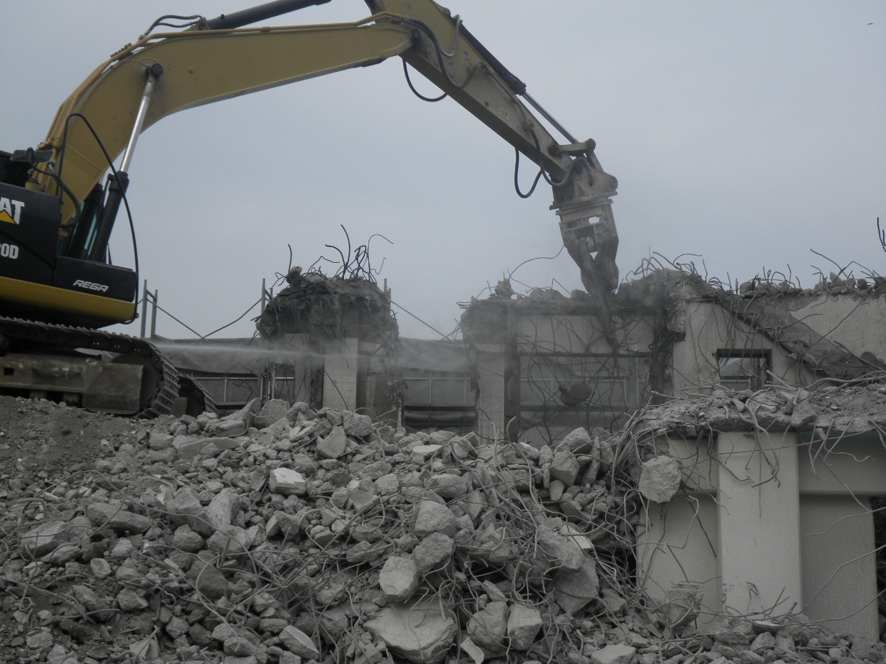 解体撤去工事、管理棟解体撤去(RC造3階建て)=2641m2、プール解体撤去、機械倉庫解体撤去、トイレ解体撤去、プール付属棟解体撤去、壁塞ぎ工事 -